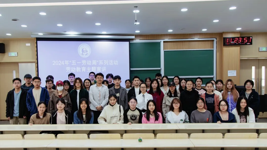 本科团委在学生工作办公室指导下于2024年4月27日在逸夫教学楼第十一阶梯教室成功举办2024年“五一劳动周”系列活动——劳动教育主题宣讲。