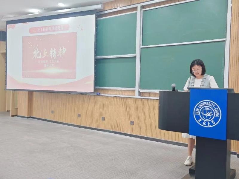 万佳悦老师从三个方面出发,深入浅出地讲解了黄大年精神的起源、内涵以及激励作用。万老师指出,同学们要认真学习黄大年老师努力将爱国之情、强国之志、报国之行相统一的精神品格,学习黄大年老师科技报国、无怨无悔的爱国情怀,同学们认真聆听,并深有感触。随后,万老师带领同学们观看北上精神解读微党课。北上精神是吉林大学的精神之源,听党指挥、为国担当的使命精神,扎根东北、兴教育才的奉献精神正是北上精神的核心内涵。此次微党课运用电影艺术的多种表现手段,追溯历史、联系当下、展望未来。视频中表现的那种敢为人先,敢于攻坚克难的勇气和动力,以及对事业的忠诚和对国家的热爱之情,给同学们带来了一次精神洗礼,使同学们更加坚定矢志与国同行的信念。
