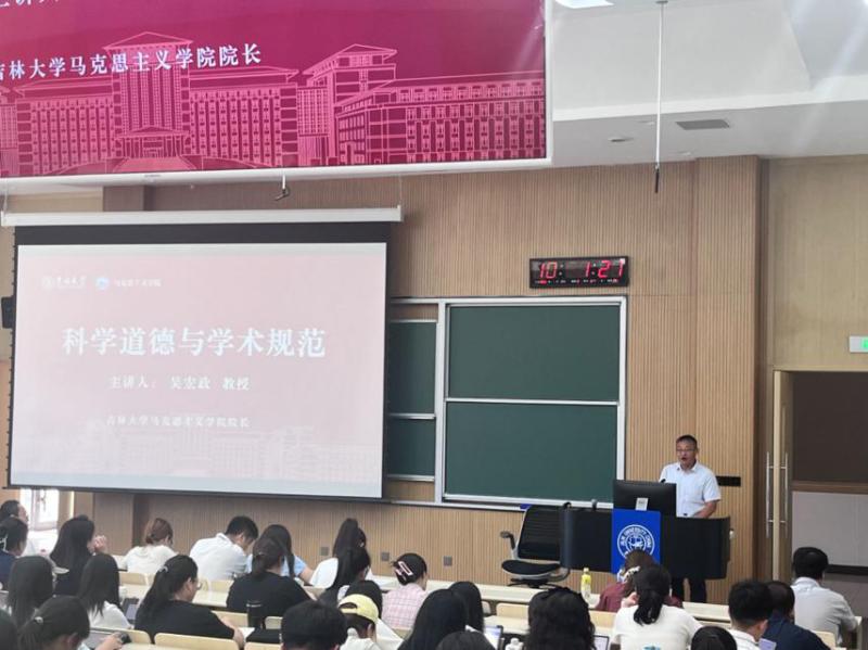 院长吴宏政教授担任主讲人,副院长韦洪发老师主持,2024级全体硕博研究生到场参与。