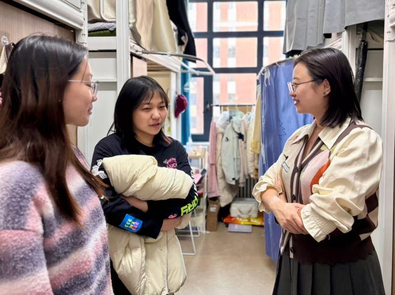 团委书记、研究生辅导员万佳悦老师深入研究生学生公寓,开展新学期首次宿舍走访工作。本次走访以“倾听需求、纾困解难、护航成长”为目标,通过“零距离”对话精准把握学生的生活动态与实际需求,为构建高质量学生服务体系提供具体实践支撑。