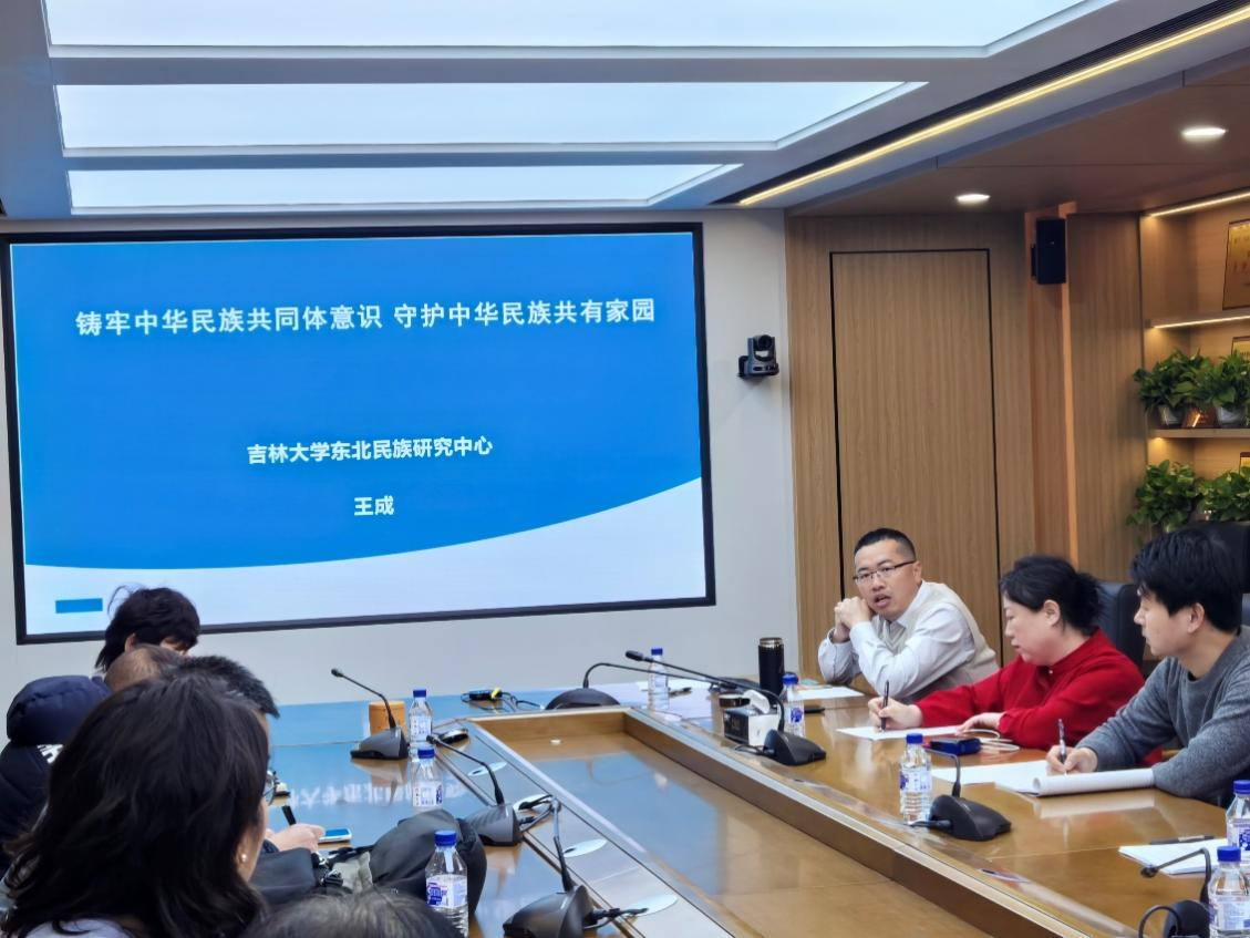 2025年2月20日下午,在吕振羽楼317会议室召开了“铸牢中华民族共同体意识 守护中华民族共有家园”主题报告会。会议邀请东北民族研究中心副主任王成教授做主题报告,副院长李静教授主持,副院长姜鑫老师,形势与政策”和“习近平新时代中国特色社会主义思想概论”教研室教师参会。