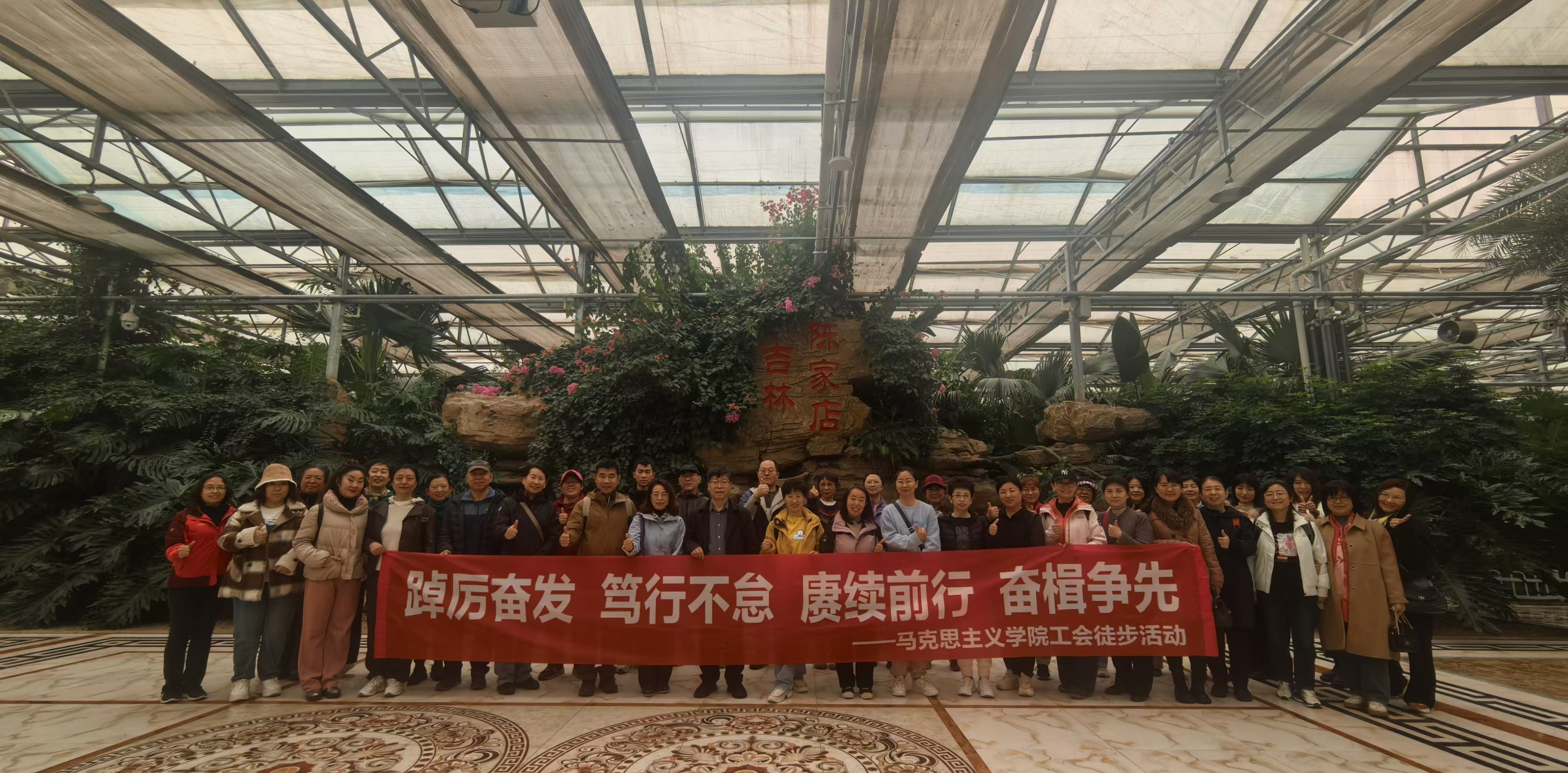 徒步行进中,教职工们交流着教学科研中的困惑和趣事,谈论着生活中的小窍门,分享健康保健的知识,策划着年终联欢会的节目,畅谈着学院建设的设想和青年教师的使命,互相鼓励更加振奋精神,为成功进入双一流而踔厉奋发、赓续前行!